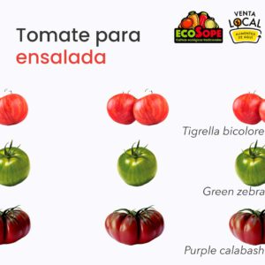 Sea como fuere, en ECOSOPE cada año cultivamos alguna variedad nueva que se cruza en nuestro camino y otras que vosotros nos pedís; porque ya lo dicen… “a todo le sienta bien el tomate, menos a las gachas y al chocolate”.