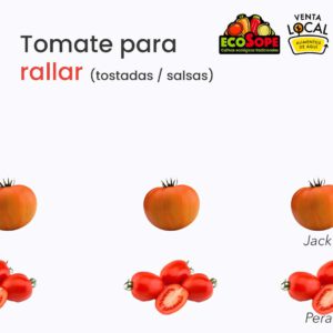 Partiendo de la base que, cualquier tomate maduro es bueno para rallar, tanto el tomate Jack como el de pera son bastantes carnosos, con lo que conseguiremos una buena cantidad ralladura usando únicamente un par de ellos.